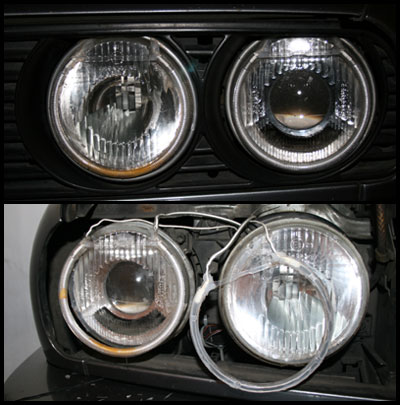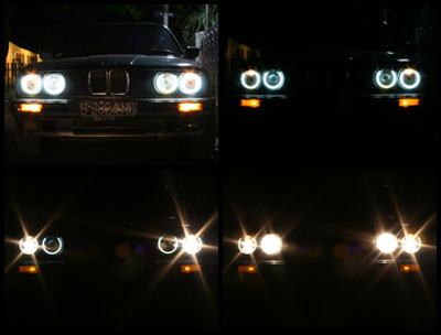 Pertama kali lihat angel eyes adalah ketika kebetulan melihat sebuah E60 keluar dari pelataran parkir BRI II. Waktu itu saya pikir bagus juga lampu dipasang lampu seperti itu. Googling di internet dapet info ternyata itu namanya angel eyes, dan sudah ada di biem semenjak E39 keluar. Wah gimana ya kalau si mobil tua dipasang angel eyes?